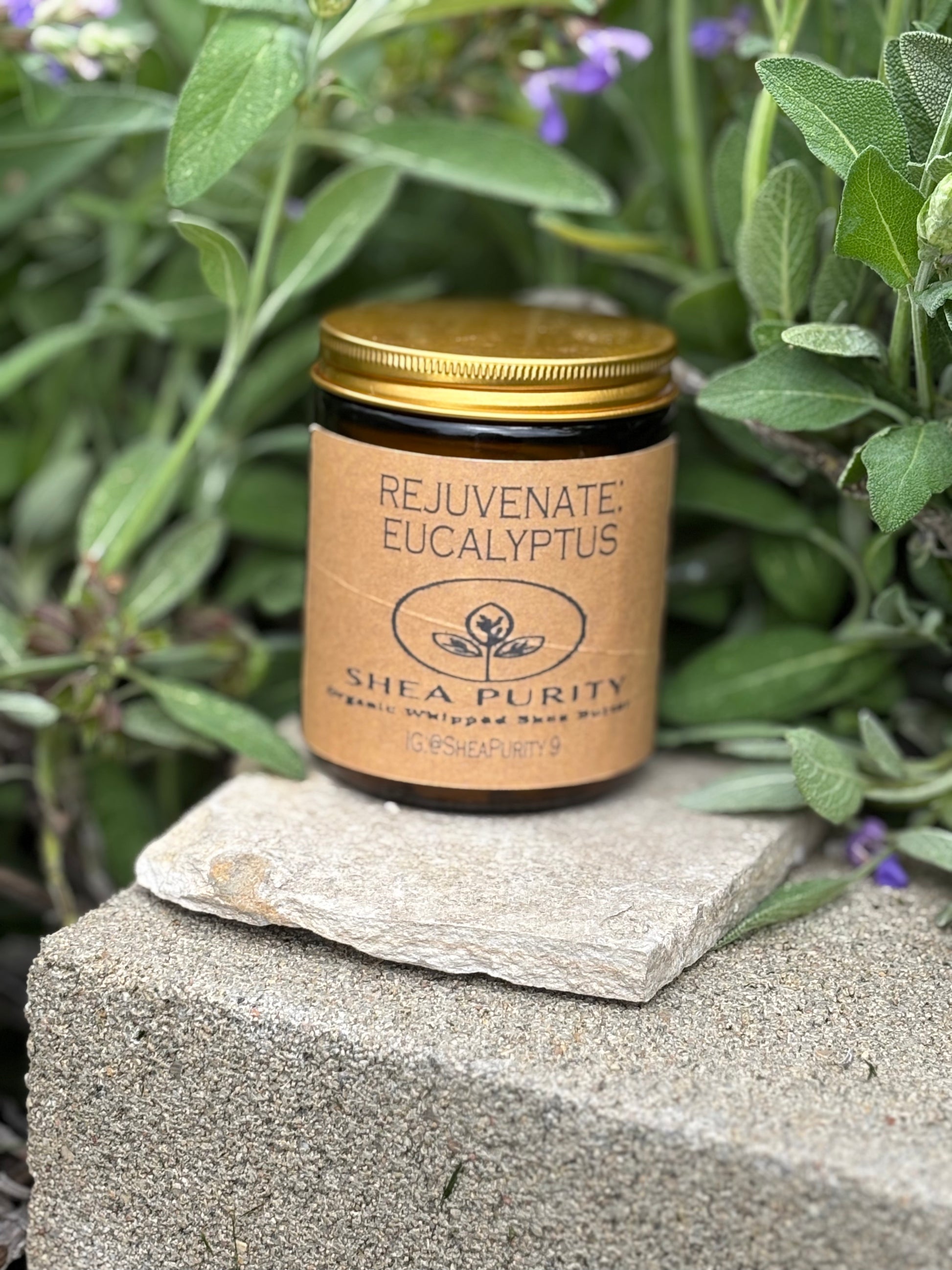 Sore and Tired Muscles? Indulge your skin while soothing aching muscles with our Rejuvenating Eucalyptus Whipped Shea Butter. A perfect blend of our finest ingredients designed to nourish, hydrate and soothe delicate skin.